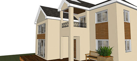 마감재 : 아스팔트 슁글 / 스타코플렉스 / 목재 사이딩 / 독일식시스템창호
